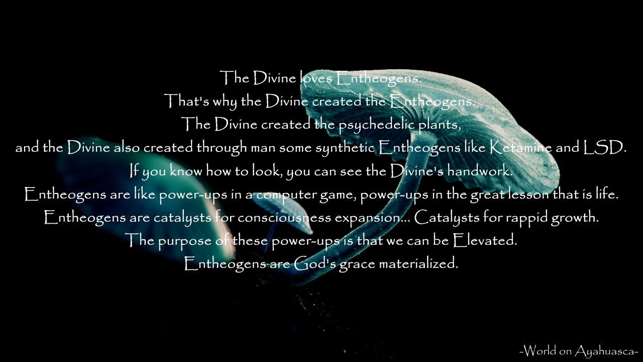 De ideeën die voortkomen uit directe, persoonlijke heilige ervaringen overlappen elkaar, maar zijn niet dezelfde als de ideeën die voortkomen uit het lezen over spiritualiteit. Op woorden gebaseerde religie is bij wijze van spreken als het lezen van een recept, terwijl de mystieke ervaring het eten proeft. Anders gezegd, religie met beperkte woorden geeft je een kaart naar heilige gelukzaligheid of de hemel; mystieke ervaring neemt je mee op bezoek. Voor de meeste mensen die zelfs maar matige ervaring hebben met Entheogenen, zijn concepten als ontzag, heiligheid, eeuwigheid, gratie, agapé, transcendentie, transfiguratie, donkere nacht van de ziel, wedergeboorte, hemel en hel meer dan theologische ideeën; het zijn ervaringen.